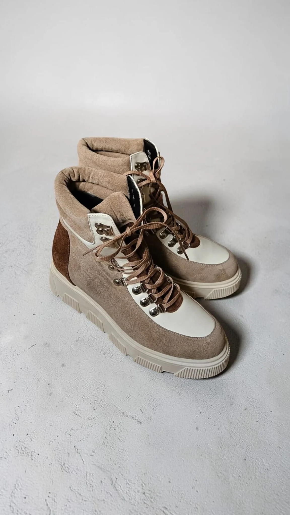 Pažljivo birane kombinacije materijala i tekstura daju ovom modelu jedinstven izgled, dok detalji poput pertlanja i robustnijeg đona dodatno naglašavaju njegov karakter.